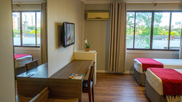 Na área mais nobre do centro de Foz do Iguaçu, combinamos em nossa estrutura: Conforto, modernidade, lazer e bem-estar, em ambientes integrados com um paisagismo verde natural em meio à cidade.